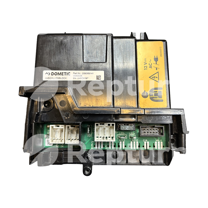 Le boîtier 289069 (souvent référencé 289069141 sous l’appellation “Anschlussblock”) est le bloc de raccordement électrique central des réfrigérateurs Dometic de la Série 10 (comme les modèles RMD 10.5, RML 10.4, etc.). Contrairement à la carte mère de gestion, cette pièce agit comme un véritable hub de distribution.